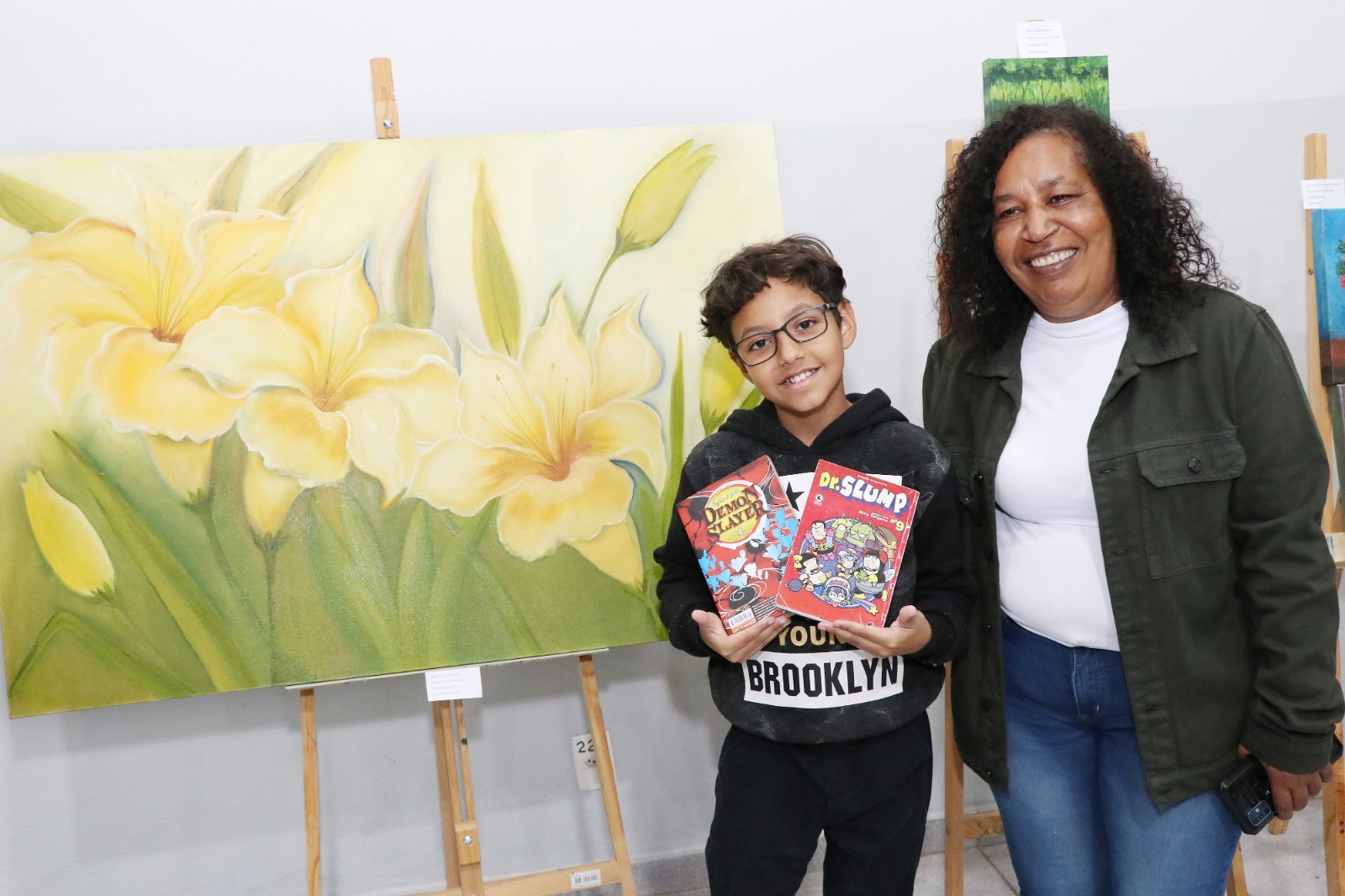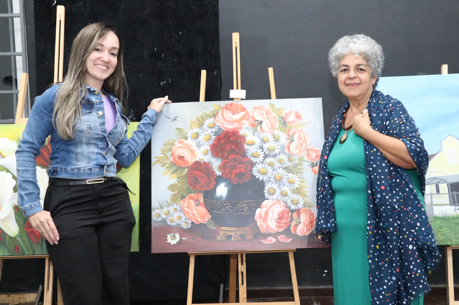 A exposição também apresenta obras autorais da artista, que desde 1987 dedica-se às artes visuais com sensibilidade e técnica refinada. Suas criações em óleo e acrílica sobre tela destacam-se por retratar paisagens, temas florais e naturezas-mortas que encantam pela beleza e harmonia.