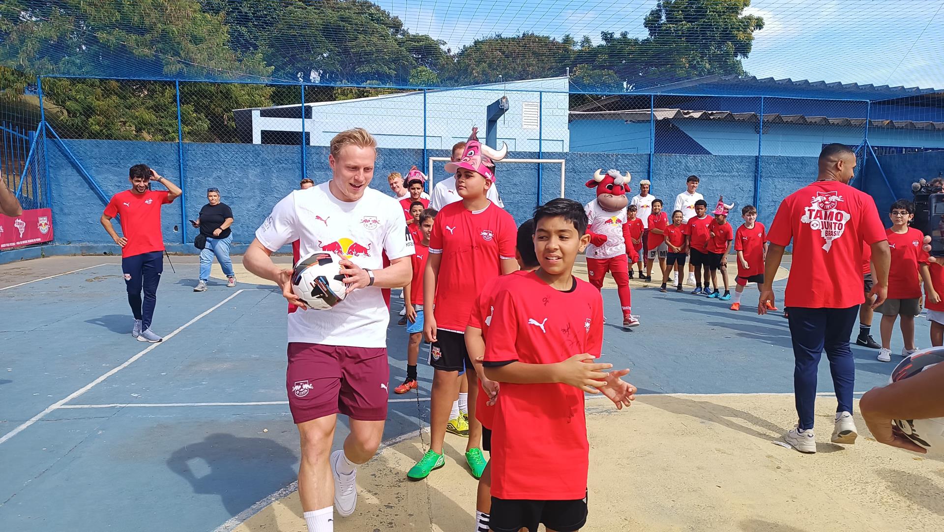 A quadra de esportes da Praça Narciso Furtado, no Parque dos Estados, será revitalizada graças à parceria da Prefeitura de Bragança Paulista com o RB Leipzig, da Alemanha, intermediada pelo Red Bull Bragantino. O anúncio foi feito na manhã desta terça-feira, dia 27/05, em evento na quadra com a presença de parte do time do RB Leipzig e crianças que praticam futebol por meio de projeto social.