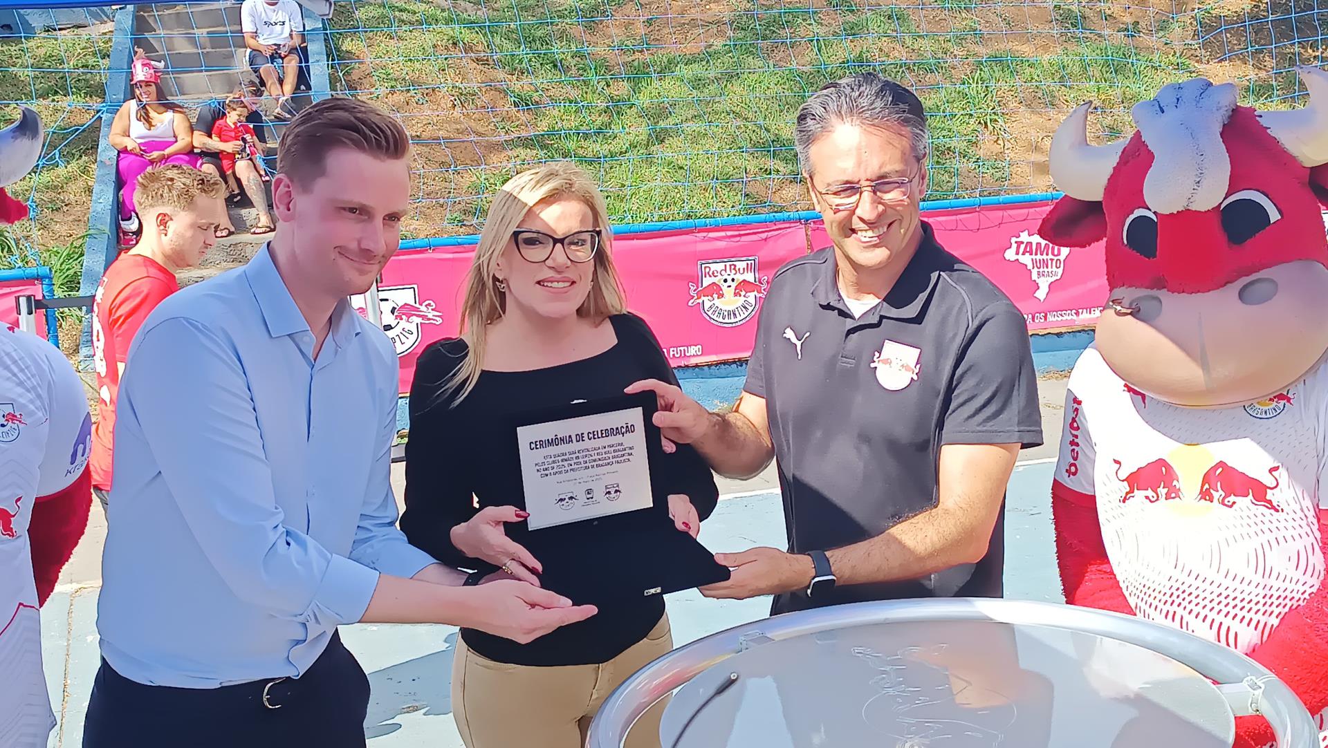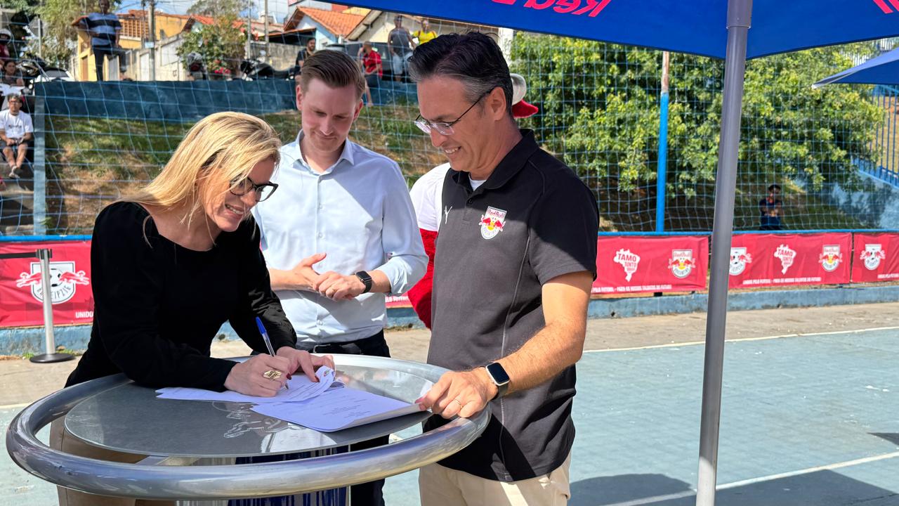 Participaram da ação a Vice-Prefeita Gislene Bueno, que representou o Prefeito Edmir Chedid; o CEO do Red Bull Bragantino, André Rocha e o CEO do RB Leipzig, Johann Plenge.