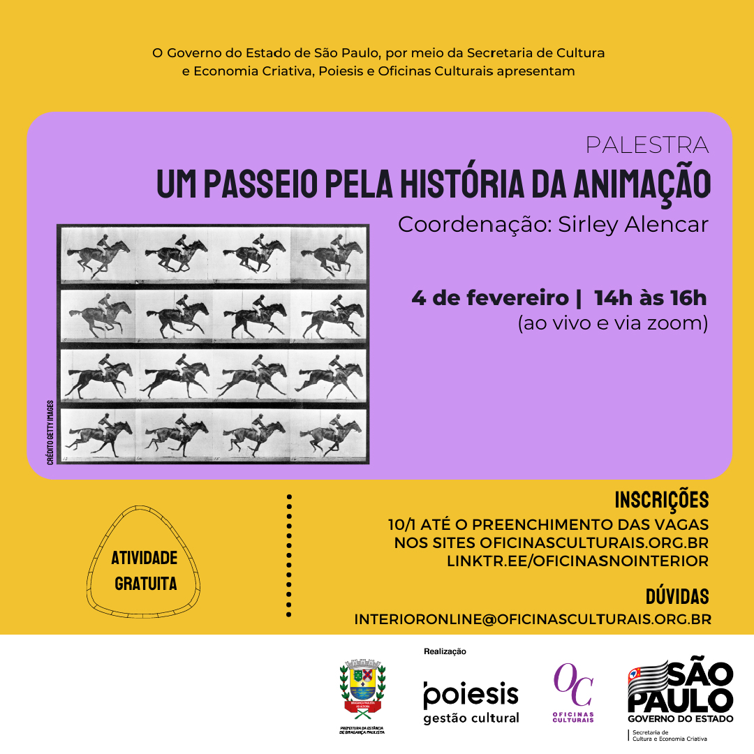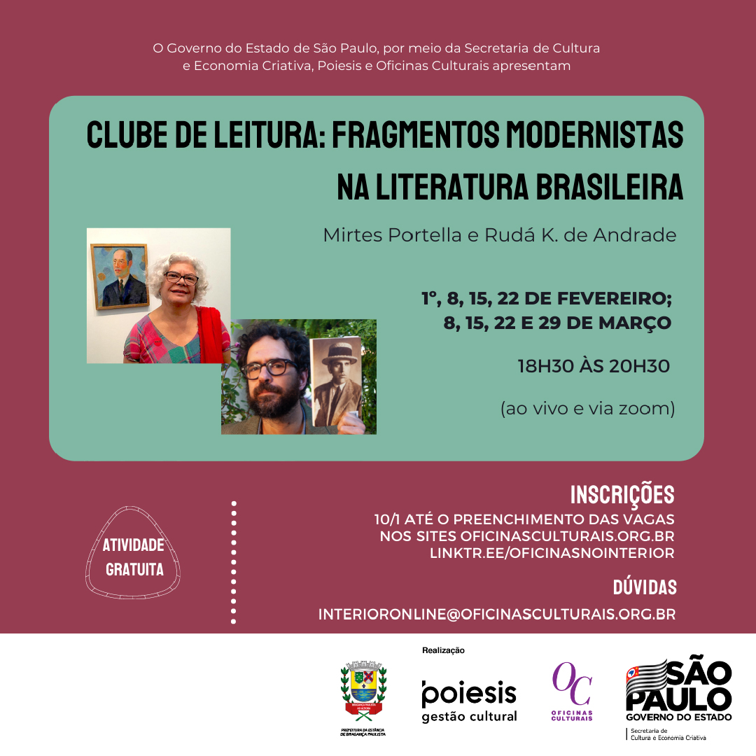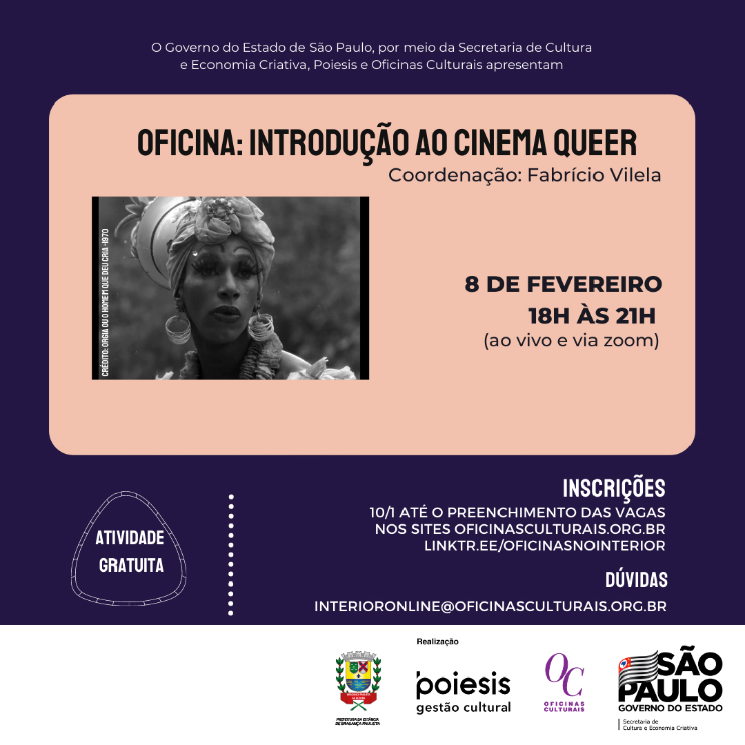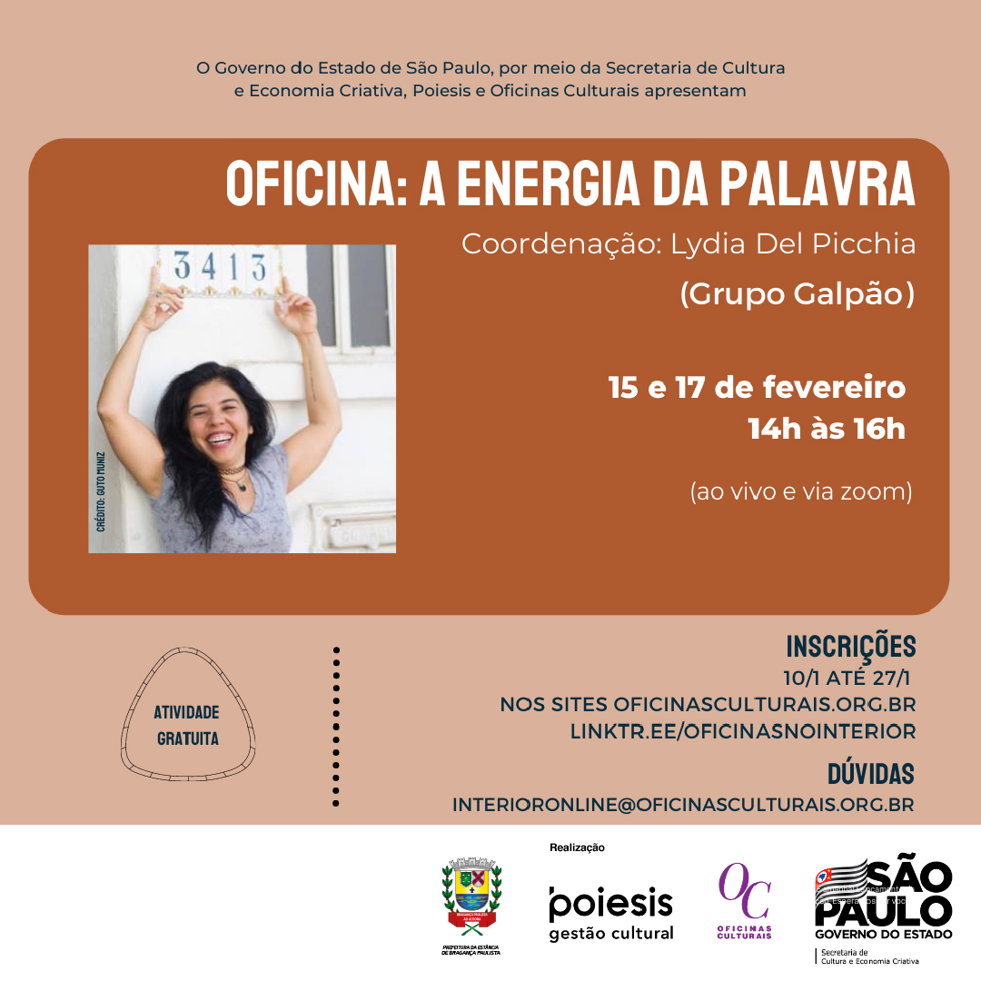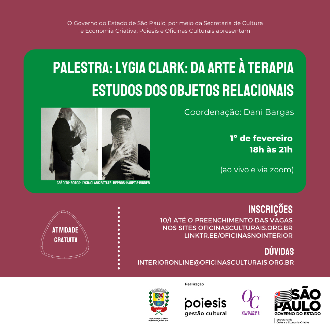 Em parceria com a Prefeitura de Bragança Paulista, o Governo do Estado de São Paulo, por meio da Secretaria de Cultura e Economia Criativa, Poiesis e Oficinais culturais, oferece capacitações culturais gratuitas em diversas linguagens. As inscrições começam nesta segunda-feira (10/01) pelo site https://linktr.ee/oficinasnointerior.